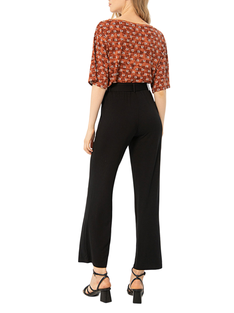 Scoprite l'eleganza senza tempo dei pantaloni Surkana a vita alta con cintura in nero. Questi pantaloni da donna combinano alla perfezione stile e comfort, grazie alla loro gamba larga che assicura una vestibilità fluida e confortevole.