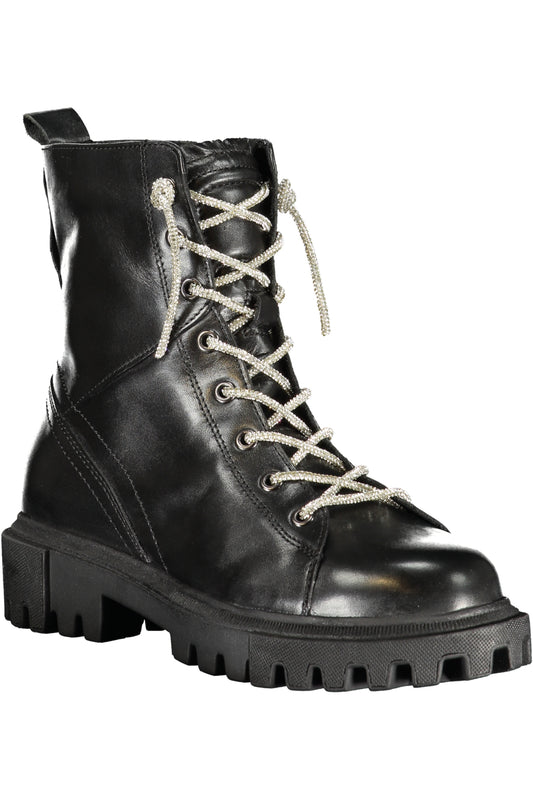 Pinko stivali anfibi Mia con placca Love Birds in pelle nero