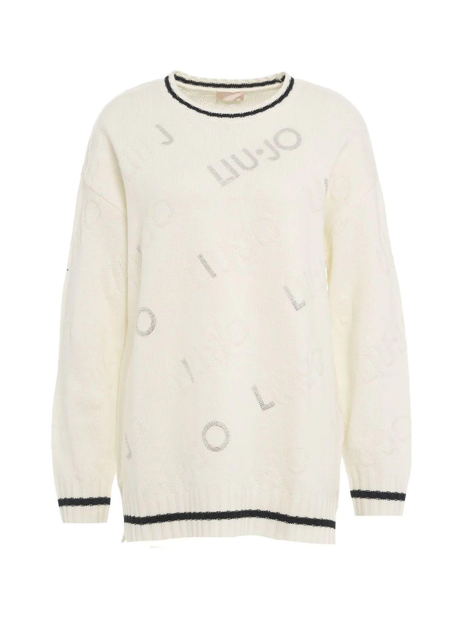 Liu Jo maglia over in misto lana con logo strass panna