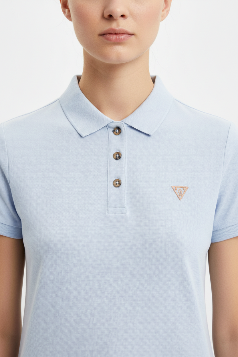 Aggiungete alla vostra collezione un elemento di raffinatezza e praticità con la Polo Maniche Corte di Guess.